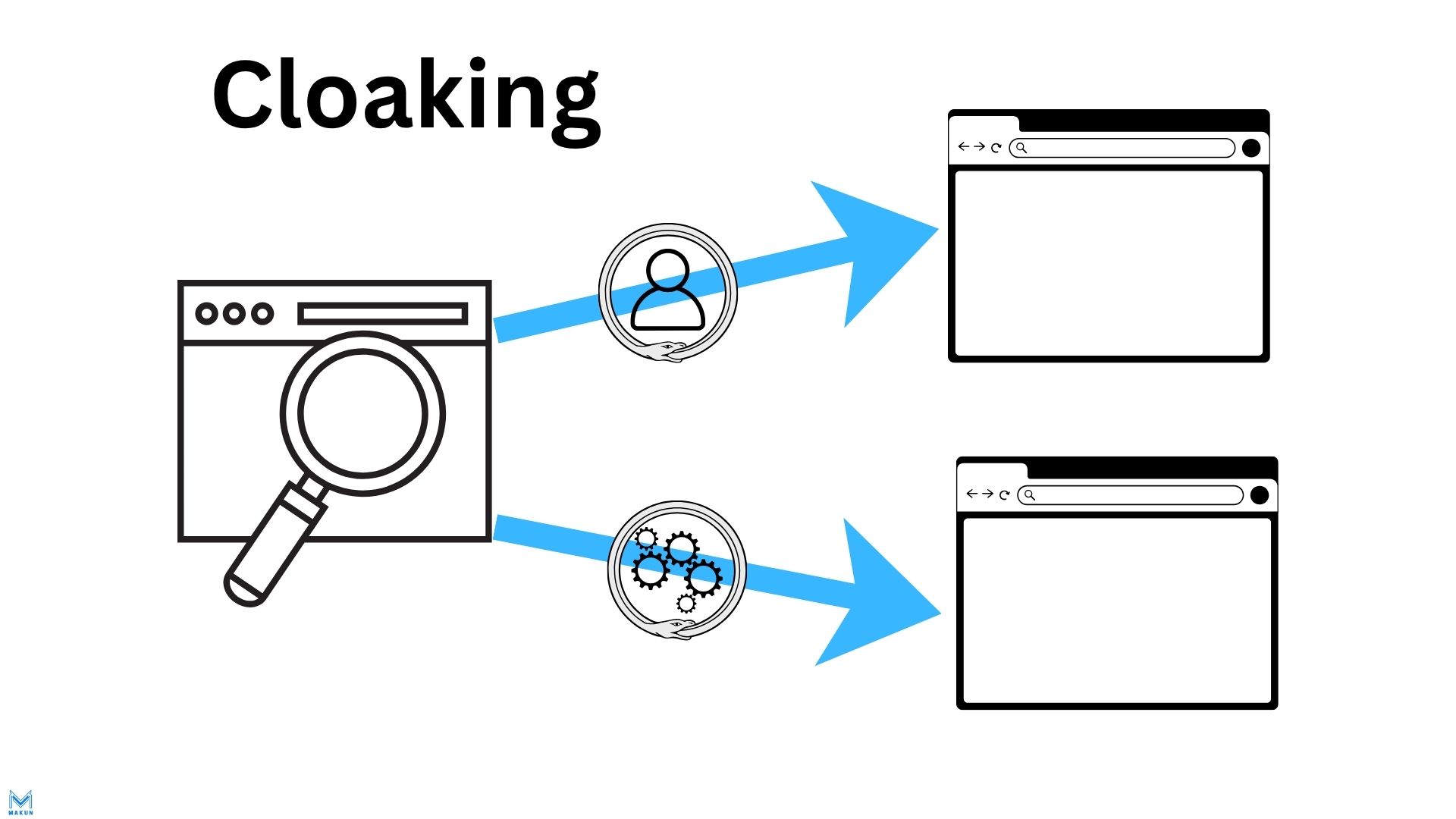 User-agent-cloaking är när en webbplats medvetet visar olika innehåll baserat på vem som besöker sidan. Användaragent Information är en textsträng som identifierar webbläsaren, operativsystemet och enheten som används för att komma åt webbplatsen. Servern tittar på user-agent i HTTP-headern där det till exempel kan stå ”Googlebot”, ”Mozilla/5.0” och så vidare. Skillnaden uppstår mellan när Googlebot eller andra bottar besöker sidan och när vanliga användare gör det.